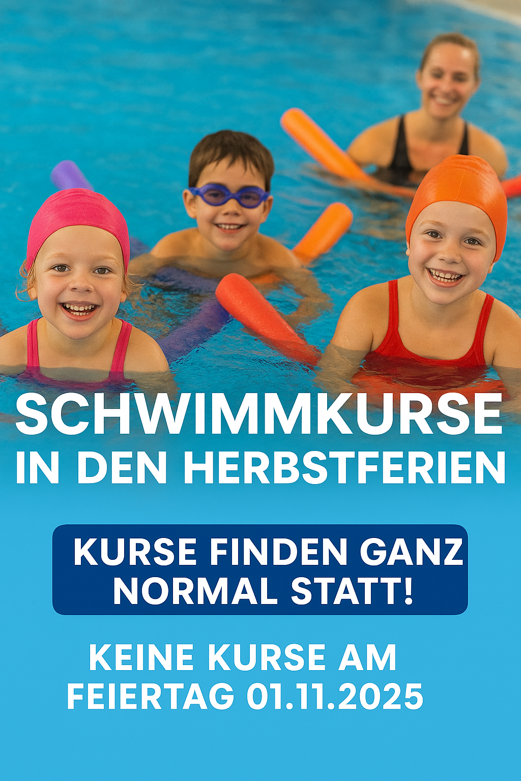 Liebe Eltern, aufgrund umfangreicher Reinigungs- uns Wartungsarbeiten im Hallenbad müssen wir im Zeitraum vom 10.10.22 - 29.10.22 eine Pause einlegen. Ab dem 02.11.22 findet der Kurs wie gewohnt statt. Vielen Dank für Ihr Verständnis.