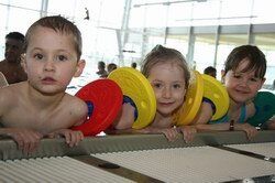 Bei abwechslungsreichen Spielen und Aufgaben werden die Kinder an das Wasser gewöhnt und lernen dabei, dessen Eigenschaften für sich zu nutzen.